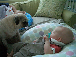 Not to be outdone by his sister, Julian shows us he can lounge with the best of them and that he's got some cute outfits too! Plus, he can tame our beast of a pug Lucy, or is she taming him? And, who can forget Emma? Her magnificent black fur feels so good on our bare feet!!